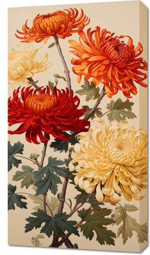 Obraz z serii natura zatytułowany Tańczące Chryzantemy. Płynne, spirale płatków w odcieniach czerwieni, pomarańczy i kremu, tworzą dynamiczny ruch, który przyciąga wzrok i przywołuje uczucia radosnego zmysłowości. Zielone liście kontrastujące z głębokimi odcieniami kwiatów dodają głębokości i tekstury kompozycji. Ten wizualny spektakl podkreśla naturę chryzantemy jako symbolu odnowy i nieśmiertelności. Doskonale wpasuje się w eleganckie spa, luksusowe hotelowe lobby oraz wnętrza w stylu vintage.BLEJTRAMABlejtrama, na którą naciągane jest płótno, wykonana jest z naturalnego drewna sosnowego. To mocne i solidne drewno stanowi jedno z najbardziej ekologicznych rozwiązań, gdyż jest łatwe w obróbce. Dodatkowym atutem jest fakt, że sosna rośnie w Polsce, co gwarantuje lokalną obróbkę materiału. Obraz na takiej blejtramie jest trwały i wytrzymały. Ramki do zdjęć nie są wliczone w cenę wydruku. Jeśli chcesz je nabyć, prosimy o dokonanie zakupu oddzielnie.