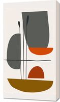 Obraz z serii boho zatytułowany Współgranie to odważne połączenie kształtów i kolorów, gdzie każdy element współgra z innymi, tworząc zbalansowaną całość. Zachowując estetykę mid-century modern, dzieło łączy w sobie ciepłe odcienie brązu, ochry oraz głęboką czerwień z neutralnymi szarościami i czernią. Abstrakcyjne formy przypominające naczynia i rośliny nakładają się na siebie, tworząc iluzję głębi i perspektywy. Delikatne linie nadają kompozycji strukturę i porządek. Ten obraz będzie wyróżniającym się dodatkiem do każdego nowoczesnego wnętrza, idealnie komponując się w przestrzeniach, gdzie dominuje prostota i spokój, jak minimalistyczne salony, stylowe biura czy ciche kąciki do czytania.