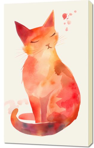 Obraz z serii wnętrza zatytułowany Akwarelowy Kot przedstawia akwarelową ilustrację spokojnego, zamyślonego kota. Kot zamyka oczy w zadowoleniu, a jego sylwetka płynnie przechodzi w bogatą paletę ciepłych odcieni czerwieni i pomarańczu, co nadaje dziełu wrażenie spokoju i ciepła. Delikatne plamy i rozmycia barw typowe dla akwareli tworzą wrażenie lekkości i przestrzeni, a jednocześnie podkreślają łagodność i spokojny nastrój obrazu. Jest to doskonały wybór dla tych, którzy pragną wprowadzić do swojego domu element relaksu i spokoju. Obraz ten idealnie wpasuje się w przestrzeń taką jak przytulna kawiarnia, zakątek do czytania w domowej biblioteczce lub pokój dziecinny, gdzie może inspirować do spokojnego snu i odpoczynku.