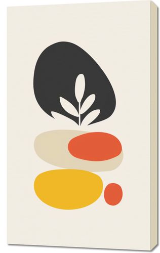 Obraz z serii boho zatytułowany Botaniczna Spójność łączy stonowane, ziemiście beżowe tony z odważnym, czerwonym i żółtym akcentem, tworząc spójną i ciepłą paletę barw. Centralne miejsce zajmuje graficzna, biała roślina, która z kontrastowym czarnym tłem tworzy silny wizualny element. Proste, geometryczne formy nadają dziełu nowoczesnego charakteru i sprawiają, że jest ono wyraziste, a jednocześnie subtelnne. Idealny do wnętrz, gdzie dominuje spokój i równowaga, jak skandynawskie salony czy minimalistyczne sypialnie, ten plakat doda elegancji każdemu otoczeniu.