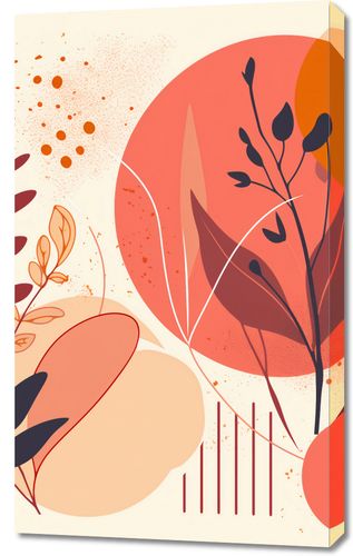 Obraz z serii minimalistyczne zatytułowany Ciepłe Popołudnie. Grafika ta przedstawia estetyczne roślinne motywy na tle stylizowanych kształtów w ciepłej palecie barw, łącząc odcienie czerwieni, pomarańczy i beżu. Elementy takie jak kropki i linie dodają tekstury i dynamiki, tworząc wrażenie ruchu i lekkości. Ten obraz idealnie komponuje się z wnętrzami, które czerpią inspiracje z natury, wykorzystując jej motywy i barwy. Jego ciepłe tony będą doskonale pasować do salonów, pokoi relaksacyjnych czy nawet nowoczesnych biur, gdzie może dodać odrobinę spokoju i domowego ciepła.