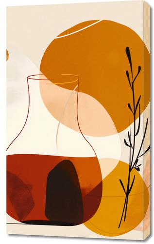 Obraz z serii minimalistyczne zatytułowany Esej o Barwach. To artystyczne dzieło przedstawia różnorodne, płynne formy i abstrakcyjne kształty w ziemistej palecie kolorów, takich jak głęboki pomarańcz, ciepły beż i elegancki brąz, dopełnione delikatnymi, czarnymi detalami roślin.Ten obraz świetnie odnajdzie się w nowoczesnym, minimalistycznym wnętrzu, które szuka ciepła i charakteru, dodając mu stylu i głębi. Będzie pasował do jasnych przestrzeni dziennych, gabinetów czy holów, wprowadzając element spokoju i skupienia.