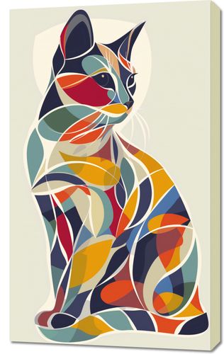 Obraz z serii minimalistyczne zatytułowany Kalejdoskopowy Kot to eksplozja barw i kształtów, która przenosi klasyczny wizerunek kota w świat abstrakcyjnej sztuki. Przepełnione ciepłymi odcieniami żółci, pomarańczy, czerwieni oraz zbalansowanymi akcentami zieleni i błękitu, jego formy zwijają się i przekręcają, tworząc płynną, prawie hipnotyzującą kompozycję. Kot, przedstawiony w profilu, ma intensywne spojrzenie, które zdaje się obserwować otaczający go kalejdoskop życia. Ten obraz doda dynamiki i koloru każdej przestrzeni, idealny do nowoczesnych mieszkań i przestrzeni kreatywnych, gdzie może stać się centrum uwagi i tematem do rozmów.