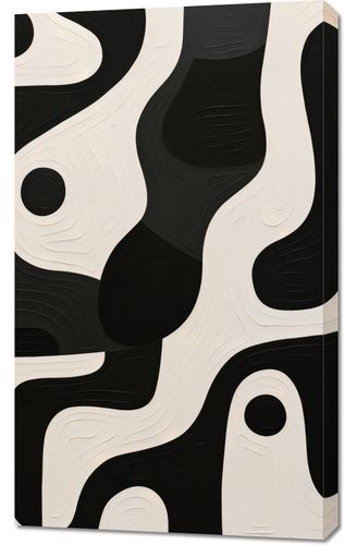 Obraz z serii abstrakcja zatytułowany Kontrastowa Harmonia. Falujące linie w odcieniach bieli i głębokiej czerni splatają się w hipnotyzujący wzór, przypominający rytmiczny taniec światła i mroku. Te dynamiczne kształty dodają obrazowi dynamiki, podczas gdy kontrastowe barwy tworzą uczucie równowagi i spokoju. Subtelne zagłębienia i wypukłości na powierzchni obrazu dodają mu głębi i faktury. Świetnie sprawdzi się w nowoczesnych biurach o minimalistycznym designie, galeriach sztuki dla miłośników abstrakcji, czy też w modnych kawiarniach, gdzie chce się podkreślić awangardowy charakter wnętrza.