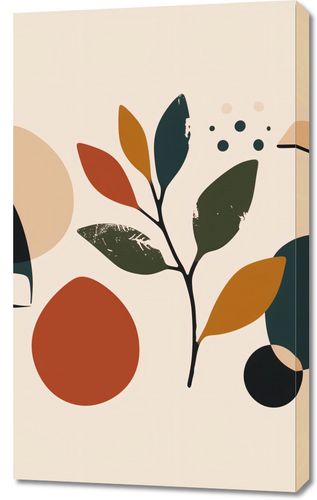 Obraz z serii minimalistyczne zatytułowany Ogród Melancholii. Grafika ta przedstawia kolekcję stylizowanych liści i kształtów, które tworzą spokojną i harmonijną kompozycję w ciepłej palecie barw - od głębokiego granatu po delikatne odcienie beżu i ochry, z akcentami w kolorze terrakoty. Każdy element graficzny, choć uproszczony, jest bogaty w detale, co nadaje plakatowi subtelną głębię i teksturę.Ten obraz będzie pięknie wyglądał w wnętrzach, gdzie naturalne materiały są na czele - takich jak drewno, kamień lub lniane tkaniny. Jego prosta, ale elegancka estetyka sprawia, że jest to idealny dodatek do salonu, jadalni, a nawet kuchni, wprowadzając do pomieszczenia spokój i równowagę.