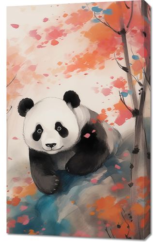Obraz z serii motywy wschodnie zatytułowany Panda wśród Klonów. Ten obraz przedstawia słodką pandę, spoczywającą wśród malowniczych, jesiennych klonów. Akwarelowe techniki malarskie nadają kompozycji miękkości i lekkości, a żywe kolory liści wprowadzają atmosferę spokojnej radości. Obraz ten jest idealnym wyborem dla miłośników zwierząt i natury, doskonale nadaje się do dziecięcych pokojów, przestrzeni edukacyjnych lub jako przytulny element dekoracyjny w domowych salonach.