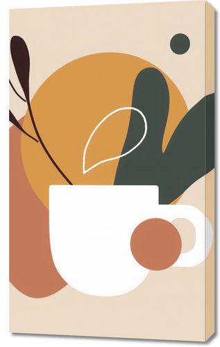 Obraz z serii minimalistyczne zatytułowany Ranna Kawka. Ta grafika to subtelne połączenie codziennego przedmiotu – kubka kawy – z abstrakcyjnymi elementami i roślinnymi motywami, co razem tworzy ciepłą i przyjemną kompozycję w odcieniach ochry, brązu i zieleni. Przenikające się kształty i delikatne linie nadają pracom niemal zenową jakość. Obraz ten doskonale uzupełni przestrzeń kuchenną, jadalnię lub domową kawiarnię, wprowadzając element spokoju i przytulności do porannego rytuału. Może także dodać ciepła i domowego charakteru do biur, zapewniając relaksującą atmosferę.