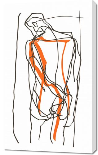 Obraz z serii minimalistyczne zatytułowany Ruch i Akcent. Grafika wykorzystuje dynamiczny zarys, aby przekazać poczucie ruchu i energii. Grube, czarne linie szkicują formę, która może być interpretowana jako postać w ruchu, a intensywne, pomarańczowe akcenty dodają dziełu dramatyzmu i głębi. Sama forma jest tylko nakreślona, pozostawiając wiele miejsca dla interpretacji widza. Całość zdaje się być złapanym w locie fragmentem większej narracji, momentem zawieszonym między akcją a spoczynkiem.Plakat wniesie do przestrzeni surową, artystyczną energię. Idealnie nada się do awangardowych przestrzeni, jak loftowe apartamenty, studia artystyczne czy nowoczesne biura, gdzie może stać się punktem zaczepienia dla oka i inspiracją do kreatywnych dyskusji.