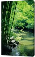 Obraz z serii natura zatytułowany Spokój Bambusów. Ukazuje on idylliczny zakątek przyrody, gdzie zielone pędy bambusa delikatnie zginają się nad błogim, spokojnie płynącym strumieniem. Gra światła i cienia na liściach bambusa tworzy wrażenie głębi i spokoju, zaś szemrząca woda dodaje uczucie świeżości i czystości. Ten obraz oddaje piękno i spokój odosobnionego zakątka natury, jest więc idealny dla przestrzeni relaksacyjnych takich jak spa, pokoje do medytacji lub jako ukojenie w zgiełku codzienności w domowych wnętrzach. To doskonała dekoracja dla tych, którzy pragną wprowadzić element natury i harmonii do swojego otoczenia.