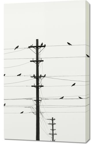 Obraz z serii pejzaże zatytułowany Symfonia na Drutach. Prezentuje on prostotę miejskiego krajobrazu, gdzie ptaki siedzą równomiernie rozmieszczone na przewodach telefonicznych. Czyste tło i sylwetki ptaków na linii energetycznej tworzą graficzny i rytmiczny wzór, który jest zarówno spokojny, jak i dynamiczny. Ten obraz to hołd dla nieoczekiwanej urody w codziennych scenach miejskich, idealny dla tych, którzy cenią sobie prostotę i nowoczesny design. Pasuje do nowoczesnych wnętrz biurowych, minimalistycznych salonów oraz wszędzie tam, gdzie sztuka ma za zadanie wprowadzać element spokoju i porządku.