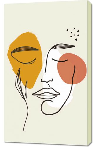 Obraz z serii boho zatytułowany Szept Przestrzeni.Grafika przedstawia abstrakcyjne przedstawienie twarzy, które łączy linearną elegancję z organicznymi kształtami i pastelowymi akcentami kolorystycznymi. Proste linie kreślą spokojne, ale wyraziste kontury twarzy, podczas gdy geometryczne i abstrakcyjne formy w odcieniach pomarańczu i żółci nakładają się, tworząc iluzję głębi i ciepła. Grupa małych czarnych kropek nad głową dodaje element tajemniczości. To dzieło sztuki wnoszące do wnętrza element introspekcji i spokoju, jest idealne dla przestrzeni, które szukają spokojnego akcentu artystycznego. Doskonale nadaje się do umieszczenia w przestronnych, jasnych salonach, przytulnych sypialniach czy medytacyjnych kącikach, wprowadzając atmosferę kontemplacji i spokoju ducha.