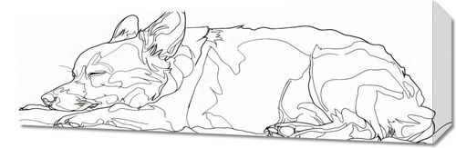 Obraz z serii minimalistyczne zatytułowany Śpiący Psiak.To delikatna linia rysunku, która za pomocą prostych, płynnych linii uchwyciła spokojny moment odpoczynku psa. Obraz sprawia wrażenie zarówno delikatnego, jak i pełnego ekspresji, z akcentami na szczegółach takich jak kształt uszu, fałdy skóry i zrelaksowana postawa psa. Ten rodzaj sztuki może dodać elegancji i prostoty każdemu wnętrzu, pasując szczególnie do nowoczesnych i minimalistycznych przestrzeni, takich jak salony, biblioteki czy gabinety. Jego uniwersalny charakter sprawia, że będzie się dobrze komponował w różnorodnych dekoracjach, od industrialnych po skandynawskie, dodając odrobinę domowego ciepła i uroku.