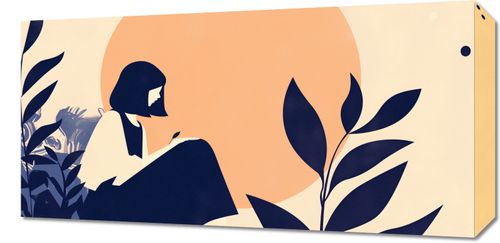 Obraz z serii minimalistyczne zatytułowany Kontemplacja. Ta delikatna grafika przedstawia sylwetkę kobiety w stanie kontemplacji na tle dużego, ciepłego, pomarańczowego słońca. Sylwetka jest otoczona przez proste, ale eleganckie czarne rośliny, co dodaje kompozycji spokojnego nastroju.Ten obraz jest idealny dla przestrzeni, które pragną wprowadzić momenty spokoju i refleksji. Będzie wspaniałym dodatkiem do sypialni, czytelni, kącików medytacyjnych czy nawet przestrzeni terapeutycznych.