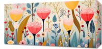 Obraz z serii abstrakcja zatytułowany Ogród Marzeń to urokliwa kompozycja, która przyciąga wzrok żywą paletą barw i abstrakcyjnym przedstawieniem natury. Każda kwiatowa forma jest tu celebracją różnorodności i piękna, od wyrafinowanych, wysmukłych pędów po pełne uroku, rozłożyste płatki. Subtelne detale, takie jak kropki na liściach czy delikatne linie na płatkach, dodają dziełu głębi i tekstury. Ta bujna, kwitnąca łąka jest wizją natury, która przenosi widza w świat fantazji i spokoju. Idealnie sprawdzi się jako centralny punkt w nowoczesnych przestrzeniach mieszkalnych, w pokojach relaksu, a także w przestrzeniach komercyjnych, takich jak spa, salony piękności lub poczekalnie, gdzie wprowadzi atmosferę spokoju i harmonii.