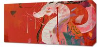 Obraz z serii motywy wschodnie zatytułowany Orientacyjny Smok, przedstawia kreatywną i nowoczesną interpretację tradycyjnego azjatyckiego smoka. Użyto bogatej palety czerwieni i pomarańczy, aby nadać energię i pasję scenie, a delikatne przerywane linie i formy abstrakcyjne dodają dziełu dynamiki i współczesnego charakteru. Smok, przedstawiony z otwartą paszczą i dzikim spojrzeniem, wydaje się ryczeć, a jego ciało płynnie przepływa przez kompozycję, tworząc wrażenie ruchu i siły. Tło, na którym pojawiają się subtelne nawiązania do wschodniej architektury i symboliki, wzmacnia kulturowe korzenie motywu. Ten obraz będzie idealnym uzupełnieniem współczesnych przestrzeni, które czerpią z tradycji i łączą je z nowoczesnym designem, takich jak salony w stylu fusion, przestrzenie kulturowe, a także restauracje i salony, gdzie chce się wprowadzić element orientalnego ducha.