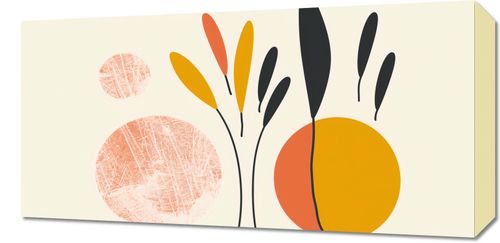 Obraz z serii boho zatytułowany Słoneczne Refleksy.Obraz czerpie z esencji natury i prostoty, przedstawiając stonowane, ale zarazem żywe kształty i linie roślin. Geometryczne kształty w ciepłej palecie barw - od głębokiego pomarańczu do delikatnego żółcienia - są wyróżnione na tle stonowanego beżu, tworząc wrażenie słońca i jego łagodnego światła rozpraszającego się w naturze. Dzieło to będzie pięknie komponować się z jasnymi, przestronnymi wnętrzami, wnosząc do nich poczucie ciepła i optymizmu. Idealnie nadaje się do dekoracji ściennej w salonach, jadalniach lub przestrzeniach oczekujących, gdzie może dodać odrobinę życia bez dominowania nad całością aranżacji. Zapewni lekki, ale wyrazisty akcent, który może inspirować i przynieść radość każdego dnia.