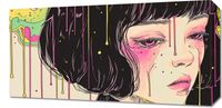 Obraz z serii pop art zatytułowany Strugi Kolorów. Ten hipnotyzujący obraz przedstawia wizerunek młodej kobiety z przymkniętymi oczami, jej twarz zdaje się być na granicy snu i jawy. Nad nią i wokół niej płyną strugi kolorów, które wydają się rozlewać jak ciecz, tworząc atmosferę oniryczną i abstrakcyjną. Kontrast między realistyczną twarzą a surrealistycznym tłem podkreśla emocjonalną głębię i złożoność ludzkich doświadczeń.Obraz ten doskonale uzupełni przestrzeń pełną kreatywności i wyobraźni, taką jak pracownie artystyczne, kawiarnie, czy nawet nowoczesne pokoje młodzieżowe. Może również stanowić niebanalny akcent w pomieszczeniach terapeutycznych lub coachingowych, gdzie rozmowa na temat emocji i wewnętrznego świata jest na porządku dziennym.