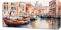 Obraz z serii pejzaże zatytułowany Wenecka Impresja, przedstawia malowniczą scenę kanałów Wenecji. Styl przypominający akwarelę, z miękkimi pociągnięciami i pastelowymi refleksami na wodzie, uchwycił zarówno spokój, jak i żywą atmosferę tego zabytkowego miasta. Łodzie i gondole są cicho przywiązane do nabrzeża, a w tle wznosi się charakterystyczna sylwetka bazyliki. Ten obraz przyciąga uwagę swoją grą światła i koloru, sugerując historie i tajemnice tkwiące w sercu Wenecji. Idealnie sprawdzi się jako element dekoracyjny w przestrzeniach, które pragną przywołać elegancję i historyczną głębię, takich jak salony, studia, biura, a nawet restauracje, które chcą dodać odrobinę włoskiego charakteru do swojego wnętrza.
