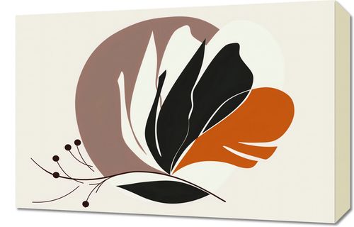 Plakat z serii minimalistyczne zatytułowany Elegancja Roślinna. Grafika ta to abstrakcyjna interpretacja roślinności, przedstawiająca stylizowane liście i kwiaty w spokojnej palecie barw - głębokiej czerni, ciepłej terakoty oraz miękkich beżów. Zarysy liści są wyraźne, a ich formy przypominają naturalny ruch, co nadaje plakatowi życie i delikatność.Ten obraz doskonale odnajdzie się w eleganckich i uporządkowanych wnętrzach, które cenią sobie czystość formy i neutralną kolorystykę. Idealnie nadaje się do przestrzeni takich jak salony, recepcje hotelowe lub prywatne gabinety, gdzie może stanowić główny punkt artystyczny, jednocześnie wprowadzając element spokoju.