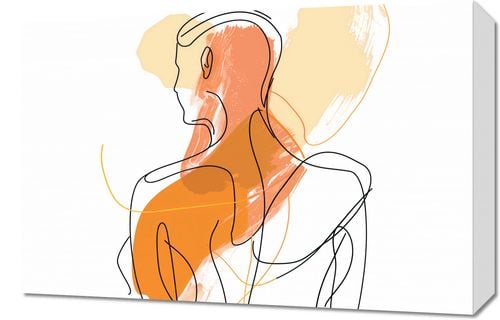 Obraz z serii minimalistyczne zatytułowany Kontur Własności. Grafika przedstawia stylizowaną, abstrakcyjną sylwetkę człowieka, zarysowaną grubymi, fluidalnymi liniami na tle o ciepłych, spokojnych kolorach. Harmonia pomiędzy beżem a pomarańczem tworzy wrażenie spokoju i ciepła, podczas gdy minimalistyczna forma sugeruje skupienie i kontemplację. Całość kompozycji jest zarazem dynamiczna dzięki śmiałym, zakreślonym liniami, jak i uspokajająca przez pastelowe plamy barw. Świetnie sprawdzi się w pomieszczeniach, które mają służyć relaksacji i odpoczynkowi, takich jak sypialnie czy pokoje medytacyjne. Będzie również cennym dodatkiem do przestrzeni wspólnych, takich jak salony lub poczekalnie, gdzie neutralne, ale ciepłe barwy wprowadzą atmosferę wyciszenia i elegancji.