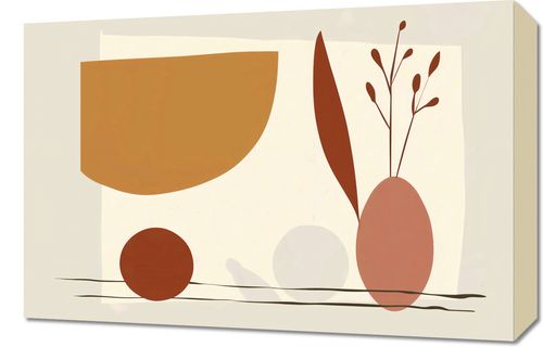 Obraz z serii boho Łodygi Wizji.Na grafice widzimy kompozycję geometryczną złożoną z delikatnych kształtów i linii. Ciepła paleta barw z przewagą odcieni pomarańczu, beżu i brązu tworzy przytulną atmosferę. Wyraźne, organiczne linie przypominają łodygi roślin i delikatne kwiatostany, które kontrastują z płaskimi, geometrycznymi formami w tle. Całość ma charakter relaksujący i minimalistyczny, sugerując spokój i harmonię. Obraz ten mógłby być świetnym dodatkiem do wnętrz w stylu skandynawskim lub nowoczesnym, gdzie kluczową rolę odgrywa prostota i naturalne piękno.