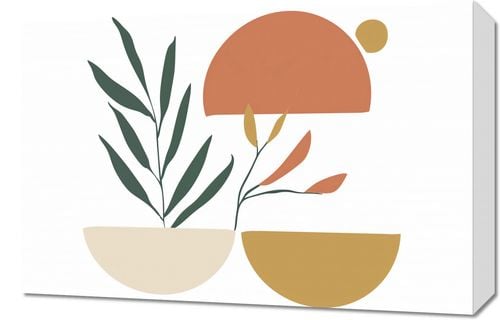 Obraz z serii boho zatytułowany Przekwit Tonacji.Obraz łączy prostotę z naturą, przedstawiając abstrakcyjne roślinne formy na tle geometrycznych kształtów. Paleta kolorów w tonacjach ziemi i spokojnych zielonych oraz pomarańczowych odcieniach, razem z kształtem przypominającym wschodzące słońce, wywołuje poczucie spokoju i nowego początku. Dzieło to idealnie nadaje się do przestrzeni, w których dominuje jasność i naturalność, takich jak skandynawskie wnętrza, miejsca odpoczynku lub przestrzenie pracy, które cenią sobie prostotę i harmonię. Może wprowadzić do pomieszczenia elementy natury w subtelny, uporządkowany sposób.