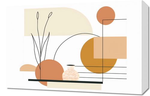 Obraz z serii boho zatytułowany Terrakotowy Krzyk.Obraz przedstawia misternie ułożoną kompozycję z geometrycznymi i organicznymi kształtami. Ujęte w stonowanej palecie barw terrakoty, beżu i czerni, delikatne linie roślin wynurzają się z minimalistycznego wazonu, a tło składa się z różnych form i kształtów, które tworzą poczucie głębi i równowagi.Ta grafika doskonale wpasuje się w nowoczesne, minimalistyczne wnętrza, które cenią sobie prostotę oraz wyrafinowanie. Może zdobić ściany w strefach wypoczynkowych, eleganckich salonach, a także stanowić punkt centralny w przestrzeniach takich jak jadalnie czy hol. Wyważony charakter plakatu sprzyja koncentracji i medytacji, co czyni go idealnym do pomieszczeń przeznaczonych do pracy kreatywnej lub odprężenia.