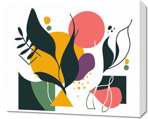 Obraz z serii minimalistyczne zatytułowany Kolorowa Abstrakcja Botaniczna. Prezentuje on żywą grę kolorów i kształtów, z akcentami organicznych form roślin i geometrycznych figur na tle. Zestawienie soczystych barw, takich jak żółć, purpura i różne odcienie zieleni, tworzy kompozycję pełną energii i życia. Ten obraz doskonale uzupełni przestrzeń, w której chce się wprowadzić odrobinę natury w nowoczesnym wydaniu. Będzie idealnym dodatkiem do jasnych, ekologicznych wnętrz, kreatywnych przestrzeni pracy, czy nawet klasycznych salonów, które poszukują śmiałego, ale nie dominującego elementu dekoracyjnego.