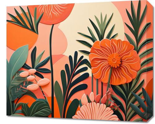 Obraz z serii natura zatytułowany Koralowy Ogród. Zachwycające, koralowe kwiaty wyrastają na pierwszy plan, podkreślane delikatnymi białymi liniami tworzącymi ich unikalne wzory. Tło w odcieniach pastelowego różu i kremu dodaje kompozycji głębi i ciepła. Złożoność i różnorodność roślin w obrazie dodaje mu nuty ekstrawagancji i wyjątkowości. Świetnie sprawdzi się w modnych kawiarniach, butikach z odzieżą damską oraz w przestrzeniach spa o relaksującym charakterze.