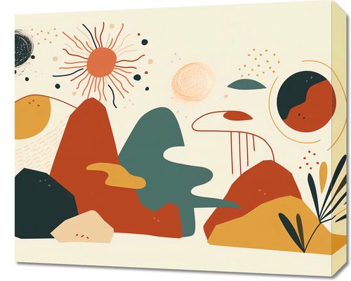 Obraz z serii minimalistyczne zatytułowany Kosmos Barw. To dynamiczne dzieło artystyczne łączy w sobie abstrakcyjne interpretacje kosmicznych ciał, jak planety i gwiazdy, z ziemskimi elementami krajobrazu. Zastosowana paleta barw to ciepłe odcienie czerwieni, pomarańczu i brązu kontrastujące z chłodnymi tonami szarości i błękitu, co nadaje kompozycji głębię i wizualne napięcie. Obraz ten idealnie wpasuje się w nowoczesne wnętrza poszukujące odrobiny abstrakcji i niebanalnych rozwiązań w dekoracji. Może być inspirującym akcentem w salonie, przestrzeni kreatywnej, a nawet w miejscach publicznych, takich jak galerie sztuki lub nowoczesne przestrzenie biurowe, przynosząc z sobą element refleksji i nowoczesności.