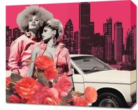 Obraz z serii pop art zatytułowany Metropolitalne Divy. Ta stylowa kompozycja łączy dynamikę miejskiego życia z vintage glamour, prezentując dwie kobiety w modnych strojach w tonacji różu, które emanują siłą i elegancją. Ich fryzury i dodatki nawiązują do lat 70. i 80., wprowadzając do obrazu powiew nostalgi. W tle widoczne są charakterystyczne dla wielkiego miasta sylwetki drapaczy chmur, wszystko utrzymane w wyrazistej, różowej kolorystyce, która nadaje plakatowi wyjątkowego charakteru. Na pierwszym planie, między postaciami, widnieje klasyczny samochód i bujny kwiat róż, dodający kompozycji romantycznej aury. Idealny dla wnętrz inspirowanych modą retro oraz dla miłośników miejskiego sznytu.