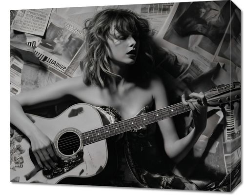 Obraz z serii pop art zatytułowany Młoda Gitarzystka. Portretuje młodą, energiczną gitarzystkę, zanurzoną w muzyce, otoczoną przez rozrzucone gazety. W monochromatycznej palecie szarości, uchwycono moment twórczego uniesienia artystki, jej pasję i pochłonięcie sztuką. W tle obrazu, strzępy artykułów i notatek muzycznych dodają głębi i kontekstu, sugerując bogatą historię i inspiracje. Obraz idealnie nadaje się do wnętrz vintage, studiów muzycznych, jak również jako inspirujący element w pokojach młodych twórców i wszędzie tam, gdzie chcemy podkreślić miłość do muzyki i jej uniwersalne przesłanie.