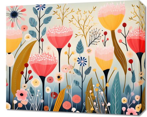 Obraz z serii abstrakcja zatytułowany Ogród Marzeń to urokliwa kompozycja, która przyciąga wzrok żywą paletą barw i abstrakcyjnym przedstawieniem natury. Każda kwiatowa forma jest tu celebracją różnorodności i piękna, od wyrafinowanych, wysmukłych pędów po pełne uroku, rozłożyste płatki. Subtelne detale, takie jak kropki na liściach czy delikatne linie na płatkach, dodają dziełu głębi i tekstury. Ta bujna, kwitnąca łąka jest wizją natury, która przenosi widza w świat fantazji i spokoju. Idealnie sprawdzi się jako centralny punkt w nowoczesnych przestrzeniach mieszkalnych, w pokojach relaksu, a także w przestrzeniach komercyjnych, takich jak spa, salony piękności lub poczekalnie, gdzie wprowadzi atmosferę spokoju i harmonii.