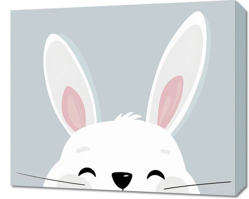 Obraz z serii wnętrza zatytułowany Radosne Skoki i przedstawia uroczy, radosny obraz króliczka, którego twarz wygląda spod górnego krawędzia obrazu. Jego wielkie, miękkie uszy w delikatnych odcieniach różu rzucają się w oczy na tle spokojnej, pastelowej szarości. Uśmiechające się zwierzątko, ze szczęśliwymi, zamkniętymi oczami, przywołuje atmosferę spokoju i radości. Idealny do pokojów dziecięcych lub jako przytulny akcent w kawiarniach i sklepach z artykułami dla dzieci. Jego subtelny, ale pełen ciepła charakter może również wprowadzić odrobinę uroku do każdej przestrzeni, która potrzebuje kropli niewinności i spokoju.