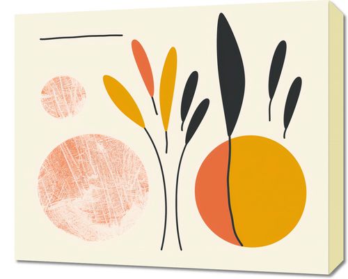 Obraz z serii boho zatytułowany Słoneczne Refleksy.Obraz czerpie z esencji natury i prostoty, przedstawiając stonowane, ale zarazem żywe kształty i linie roślin. Geometryczne kształty w ciepłej palecie barw - od głębokiego pomarańczu do delikatnego żółcienia - są wyróżnione na tle stonowanego beżu, tworząc wrażenie słońca i jego łagodnego światła rozpraszającego się w naturze. Dzieło to będzie pięknie komponować się z jasnymi, przestronnymi wnętrzami, wnosząc do nich poczucie ciepła i optymizmu. Idealnie nadaje się do dekoracji ściennej w salonach, jadalniach lub przestrzeniach oczekujących, gdzie może dodać odrobinę życia bez dominowania nad całością aranżacji. Zapewni lekki, ale wyrazisty akcent, który może inspirować i przynieść radość każdego dnia.