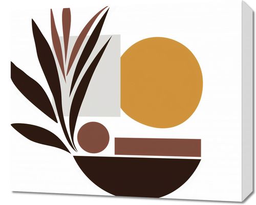 Plakat z serii minimalistyczne zatytułowany Stylizacja Roślin. Prezentuje on stylizowaną kompozycję roślinnych elementów i geometrycznych kształtów, wykorzystując ciepłą paletę brązów, beżów i głęboką ochrę. Proste formy tworzą spokojną, ale wyraźną grafikę, która wprowadza poczucie równowagi i spokoju. Ten obraz doskonale nada się do wnętrz w stylu mid-century modern, skandynawskich lub innych minimalistycznych przestrzeni, gdzie natura jest kluczowym elementem dekoracyjnym. Jego ziemiste barwy mogą dodać ciepła i naturalnego charakteru do każdego pomieszczenia, od salonu po spokojny kącik czytelniczy.