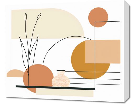 Obraz z serii boho zatytułowany Terrakotowy Krzyk.Obraz przedstawia misternie ułożoną kompozycję z geometrycznymi i organicznymi kształtami. Ujęte w stonowanej palecie barw terrakoty, beżu i czerni, delikatne linie roślin wynurzają się z minimalistycznego wazonu, a tło składa się z różnych form i kształtów, które tworzą poczucie głębi i równowagi.Ta grafika doskonale wpasuje się w nowoczesne, minimalistyczne wnętrza, które cenią sobie prostotę oraz wyrafinowanie. Może zdobić ściany w strefach wypoczynkowych, eleganckich salonach, a także stanowić punkt centralny w przestrzeniach takich jak jadalnie czy hol. Wyważony charakter plakatu sprzyja koncentracji i medytacji, co czyni go idealnym do pomieszczeń przeznaczonych do pracy kreatywnej lub odprężenia.