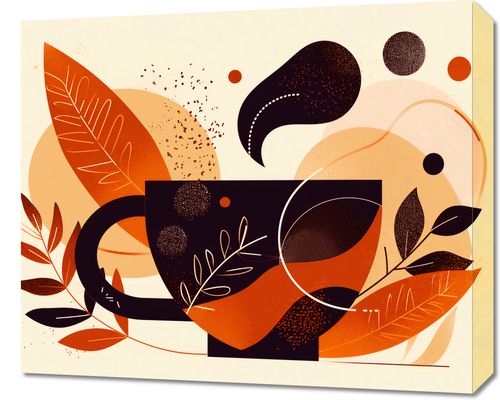 Obraz z serii minimalistyczne zatytułowany Wachlarz Ciepła. Ta kompozycja charakteryzuje się bogatymi, ciepłymi barwami jesieni, łącząc brązy, pomarańcze i czernie z delikatnymi liśćmi i abstrakcyjnymi kształtami, co razem tworzy dynamiczną, ale harmonijną całość.Ten obraz będzie idealnym dodatkiem do przestrzeni, które chcą wnieść trochę ciepła i artystycznego charakteru do swojego wnętrza. Jego ziemiste barwy i wzory mogą przyciągnąć oko w salonie, jadalni, czy współczesnej sypialni, wnioskując poczucie komfortu i naturalnego piękna.