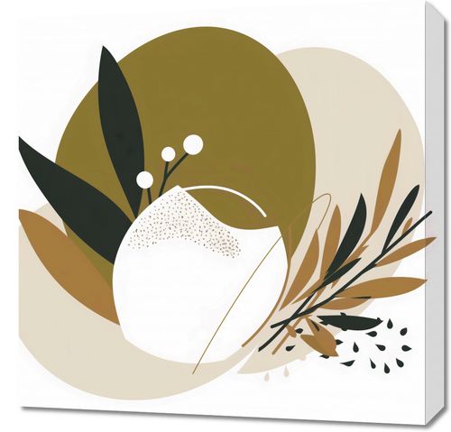 Obraz z serii minimalistyczne zatytułowany Botaniczna Esencja. Prezentuje on subtelne połączenie roślinnych motywów z organicznymi kształtami, tworząc spokojny i zbalansowany obraz w ciepłej, naturalnej palecie kolorów. Kombinacja kremów, zieleni i brązów wywołuje uczucie spokoju i bliskości z naturą. Ten obraz znakomicie wkomponuje się w wnętrza, gdzie panuje relaks i spokój, takie jak salony spa, pokoje medytacyjne, a także w domowe przestrzenie, które cenią naturalną estetykę i łagodne, ziemiste barwy. Może też stanowić piękny akcent w jasnych, minimalistycznych biurach czy pokojach gościnnych, gdzie przytulność jest kluczowa.