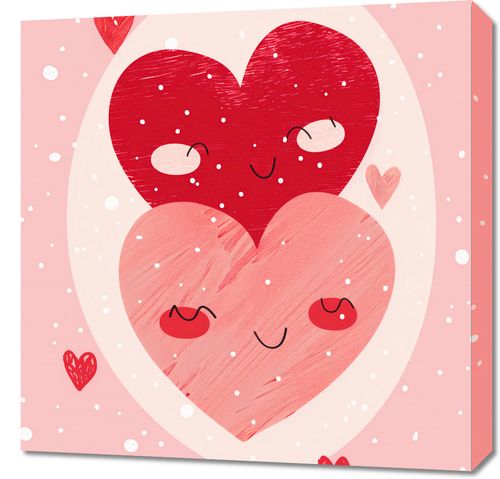 Obraz z serii abstrakcja zatytułowany ''Ciepło Serca''. Przedstawia on dwie zakochane postacie w kształcie serc, które przytulają na tle pastelowego różu. Większe serce z zamkniętymi oczami delikatnie otacza mniejsze, tworząc wrażenie bezpieczeństwa i miłości. Otoczenie jest pełne małych serduszek i kropek, przypominających lekko opadający śnieg lub konfetti, dodając magii i radości. Całość sprawia wrażenie bajkowej i kojącej, idealnej do wyrażenia uczuć i roztaczania atmosfery miłości.Ten obraz będzie pięknym akcentem w każdym pomieszczeniu, gdzie chcemy dodać odrobiny ciepła i uczuciowej bliskości, jak dziecięcy pokój, sypialnia czy nawet przestrzeń rodzinna. Jego słodki design i pozytywne przesłanie mogą także świetnie sprawdzić się jako prezent dla bliskiej osoby.