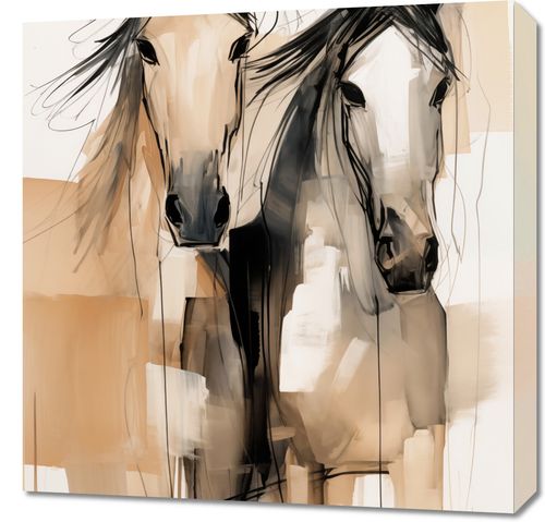 Obraz z serii wnętrza zatytułowany Dusze na Wolności. Ten artystyczny obraz przedstawia dwie abstrakcyjne sylwetki koni, uchwycone w dynamicznych, niemal eterycznych pociągnięciach pędzla. Neutralna paleta barw z dominującymi odcieniami beżu i czerni, podkreślona jest przez akcenty i plamy, co nadaje dziełu głębi i tekstury. Artystyczne, swobodne linie i plamy tuszu tworzą wrażenie ruchu i wolności, wywołując emocjonalne rezonanse z widzem. Obraz jest idealnym wyborem dla miłośników koni, sztuki współczesnej i abstrakcyjnego ekspresjonizmu, będąc nie tylko dekoracją, ale także wyrafinowanym elementem w przestrzeniach takich jak salony, biura, czy galerie sztuki.