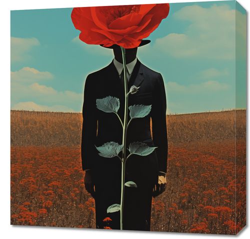 Obraz z serii abstrakcja zatytułowany Obserwator zza Maku. Ten obraz przedstawia surrealistyczny obraz człowieka z głową w formie rozkwitającego czerwonego maku, stojącego na polu pełnym kwiatów tej samej rośliny. Kompozycja gra na kontraście między ludzką postacią a bujnością natury, podkreślając połączenie człowieka z otaczającym go światem. Idealny dla przestrzeni szukających głębi artystycznej i wizualnej prowokacji, ten plakat będzie doskonałym dodatkiem do nowoczesnych salonów, galerii sztuki czy przestrzeni kreatywnych, gdzie może inspirować i wywoływać refleksję.