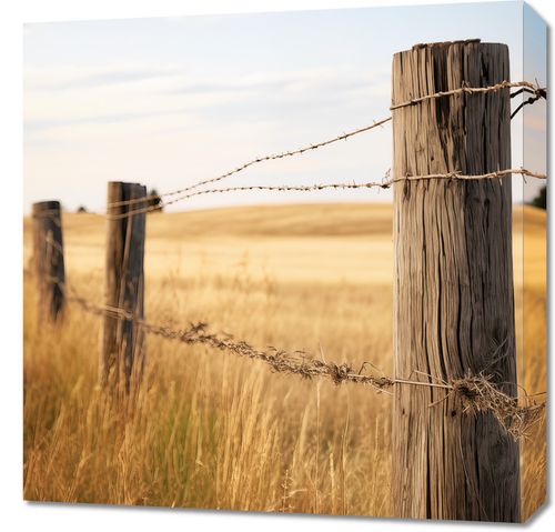 Obraz z serii pejzaże zatytułowany Płot na Polu. Obraz przedstawia rustykalny drewniany płot z drutem kolczastym, ciągnący się wzdłuż złocistego, zbożowego pola. Delikatne odcienie złota i brązu, w połączeniu z subtelnie rozmytym tłem, tworzą poczucie głębi i przestrzeni. Ten spokojny, wiejski krajobraz wprowadza atmosferę relaksu i odprężenia, idealnie nadając się do wnętrz inspirowanych naturą lub jako ukojenie dla zaganianych mieszkańców miast. Doskonały do salonu, jadalni lub jako element wypoczynkowej przestrzeni.