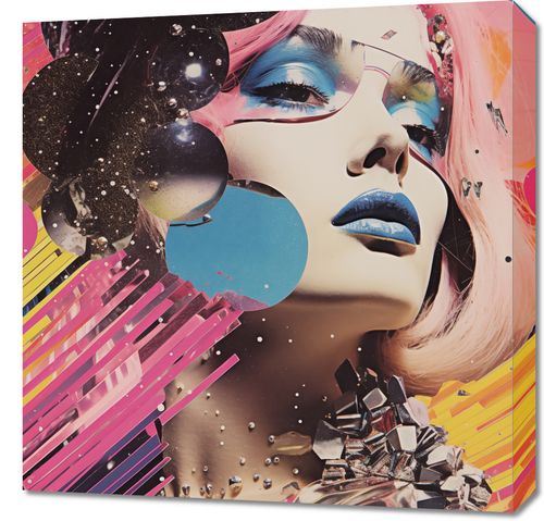 Obraz z serii pop art zatytułowany Portret Neo. Ta dynamiczna i kolorowa grafika łączy w sobie elementy pop-artu z awangardowym stylem, prezentując kobietę z różowymi włosami i intensywnie niebieskim makijażem. Abstrakcyjne formy i energetyczne linie w tle nadają kompozycji współczesnego wyrazu. Obraz ten jest odważnym oświadczeniem w świecie mody i sztuki, idealny dla przestrzeni o nowoczesnym designie, takich jak salony fryzjerskie, studia mody czy jako ekstrawagancki akcent w domowych wnętrzach ceniących oryginalność i ekspresję.