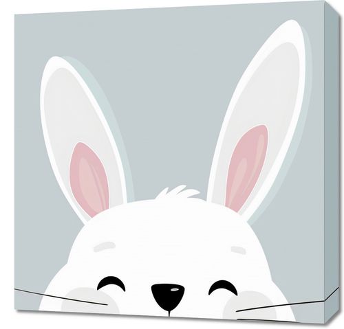Obraz z serii wnętrza zatytułowany Radosne Skoki i przedstawia uroczy, radosny obraz króliczka, którego twarz wygląda spod górnego krawędzia obrazu. Jego wielkie, miękkie uszy w delikatnych odcieniach różu rzucają się w oczy na tle spokojnej, pastelowej szarości. Uśmiechające się zwierzątko, ze szczęśliwymi, zamkniętymi oczami, przywołuje atmosferę spokoju i radości. Idealny do pokojów dziecięcych lub jako przytulny akcent w kawiarniach i sklepach z artykułami dla dzieci. Jego subtelny, ale pełen ciepła charakter może również wprowadzić odrobinę uroku do każdej przestrzeni, która potrzebuje kropli niewinności i spokoju.
