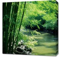 Obraz z serii natura zatytułowany Spokój Bambusów. Ukazuje on idylliczny zakątek przyrody, gdzie zielone pędy bambusa delikatnie zginają się nad błogim, spokojnie płynącym strumieniem. Gra światła i cienia na liściach bambusa tworzy wrażenie głębi i spokoju, zaś szemrząca woda dodaje uczucie świeżości i czystości. Ten obraz oddaje piękno i spokój odosobnionego zakątka natury, jest więc idealny dla przestrzeni relaksacyjnych takich jak spa, pokoje do medytacji lub jako ukojenie w zgiełku codzienności w domowych wnętrzach. To doskonała dekoracja dla tych, którzy pragną wprowadzić element natury i harmonii do swojego otoczenia.