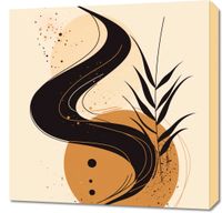 Obraz z serii minimalistyczne zatytułowany Tańcuj. Grafika cechuje się płynnymi, zakręconymi liniami, które tworzą dynamiczną kompozycję przypominającą taniec wiatru z trawami. Beżowe tło z akcentami w odcieniach czerni i złota dodaje elegancji i głębi, a rozpryski i krople tuszu wprowadzają element spontaniczności i naturalnego piękna. Plakat ten oddaje wrażenie ruchu i lekkości, będąc jednocześnie nowoczesnym i wyrafinowanym. Doskonale sprawdzi się jako artystyczny akcent w minimalistycznych i nowoczesnych wnętrzach, nadając im charakteru i wyrafinowania. Idealny do salonu, pokoju kreatywnego lub jako subtelny, ale wyrazisty element w przestrzeni biurowej.