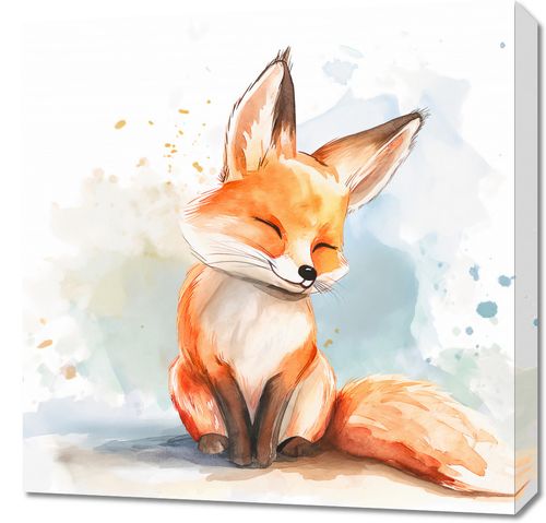 Obraz z serii wnętrza zatytułowany Zadowolony Lisek. Ten uroczy akwarelowy obraz przedstawia uśmiechniętego, zadowolonego lisa, który z zamyśleniem spogląda w dal, otoczony przez delikatne akcenty akwareli. Kolorowe plamy i rozbryzgi tuszu dodają lekkości i ruchu kompozycji, podkreślając beztroski charakter ujęcia. Idealnie nadaje się do przestrzeni pełnych ciepła i radości, takich jak pokoje dziecięce, kreatywne pracownie, czy przytulne kąciki do wypoczynku w domu. Ten obraz z pewnością wprowadzi element radosnego spokoju i pozytywnej energii do każdej przestrzeni.
