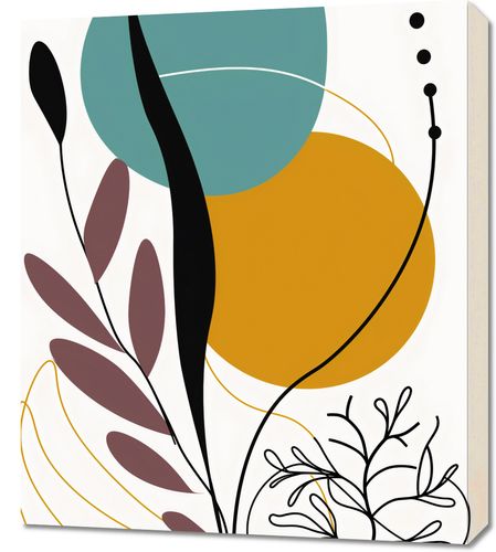 Obraz z serii minimalistyczne zatytułowany Akwarelowe Przebudzenie. Na obrazie dominuje delikatna i wyciszona paleta kolorystyczna, która łączy w sobie subtelną błękitem, ciepłą ochrę i głęboką czerń z akcentami spokojnej zieleni. Przedstawia on sylwetki stylizowanych roślin, które rozciągają się i splecione są w organiczny taniec linii i kształtów. Przemyślana gra pomiędzy pełnymi plamami barwnymi a lekkimi, linijnymi szkicami nadaje dziełu powietrznej lekkości i poetyckiego nastroju. Idealnie sprawdzi się: Ten obraz stworzy atmosferę spokoju i artystycznego wyrafinowania w każdym pomieszczeniu, od sypialni połyskującej stonowanymi barwami, przez medytacyjne kąciki, aż po eleganckie, minimalistyczne przestrzenie wspólne. Jego uniwersalny charakter sprawia, że będzie to doskonały wybór zarówno do domów prywatnych, jak i przestrzeni komercyjnych poszukujących wyrafinowanego akcentu.