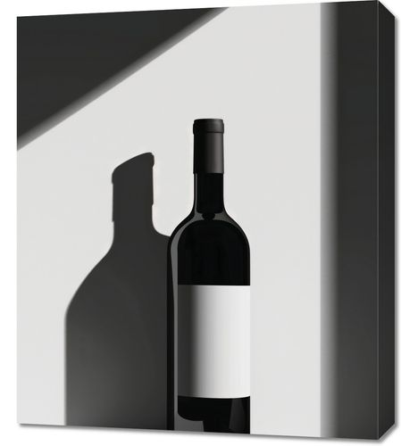 Obraz z serii wnętrza zatytułowany Butla Wina . Przedstawia minimalistyczny i elegancki wizerunek butelki wina. Kompozycja jest prosta i nowoczesna, z butelką umieszczoną na jasnym tle z ostrymi liniami cienia, które dodają głębi i zainteresowania wizualnego. Cienie są ostre i wyraźne, co sugeruje, że światło padające na butelkę jest mocne i bezpośrednie. Butelka ma klasyczną etykietę bez żadnych detali, co nadaje całemu obrazowi wyrafinowany charakter. Użycie kontrastu między ciemnymi tonami butelki a jasnym tłem podkreśla formę i sylwetkę przedmiotu, skupiając uwagę na jego zarysie. Taki obraz mógłby być świetnym dodatkiem do wnętrz urządzonych w stylu minimalistycznym lub współczesnym, a także pasowałby do przestrzeni, gdzie celebruje się kulturę wina.